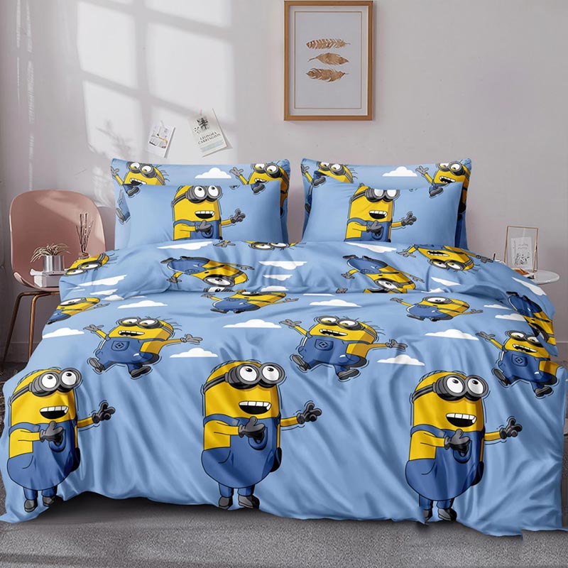 Постільна білизна з посіпаками — це сучасний комплект з яскравим тематичним дизайном, що створює у спальні виразний акцент і підкреслює індивідуальність інтер’єру. Принт із героями всесвіту Minions виглядає динамічно та зберігає насиченість кольорів завдяки якісному нанесенню. Натуральна тканина — бязь люкс — забезпечує комфортний сон, добре пропускає повітря та витримує часті прання без втрати форми. У нашому каталозі ви можете купити постіль з посіпаками у різних розмірах та комплектаціях, обравши практичний і довговічний варіант.