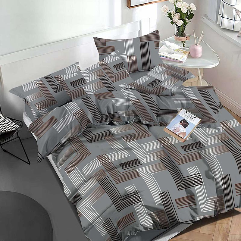 Стриманий геометричний візерунок у сіро-біло-коричневій гамі виглядає стильно та лаконічно. Така постіль гармонійно вписується в сучасний, мінімалістичний або лофт-інтер’єр спальні.